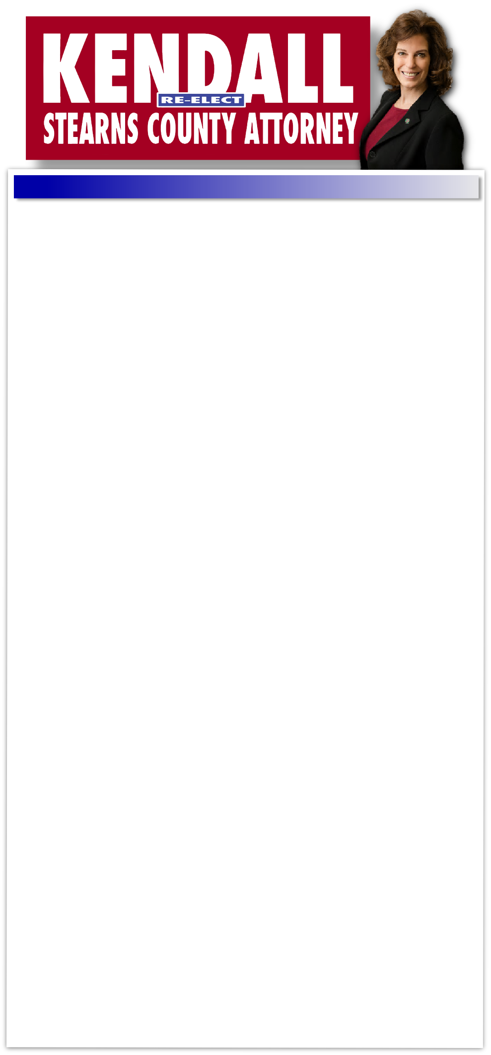 Prepared and paid for by the Kendall for Stearns County Attorney Committee, PO Box